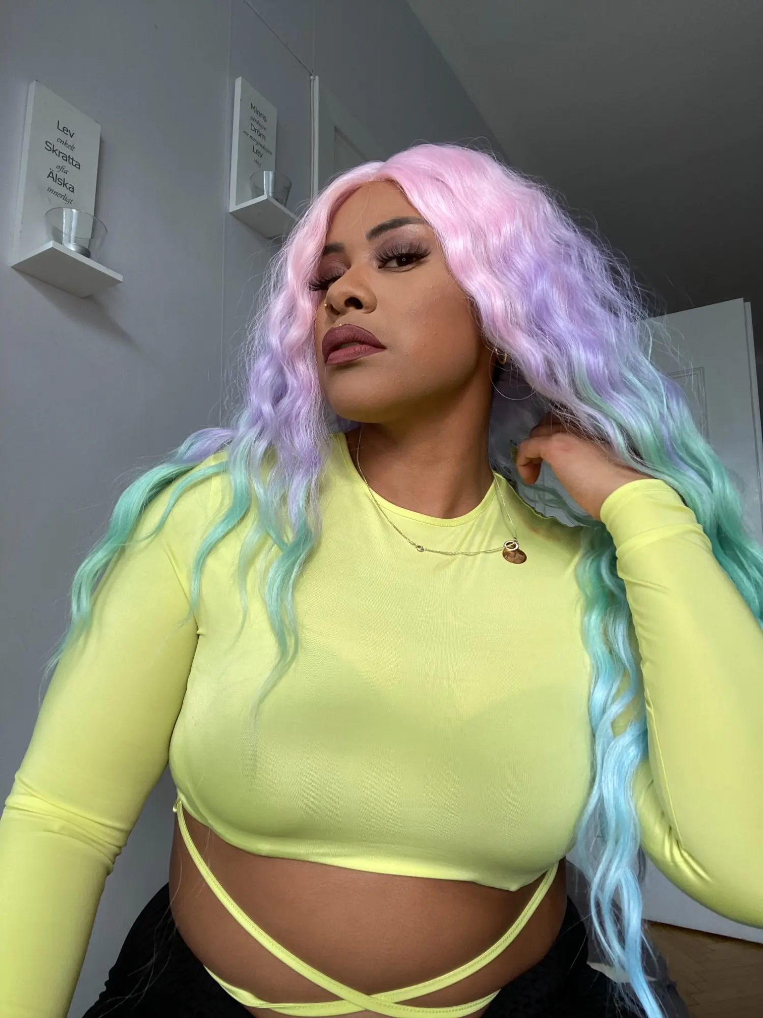 【Hair Style】Lace Front Wigs 30'' Long Wavy Synthetic Wigs Ombre Rainbow Wigs with Baby Hair