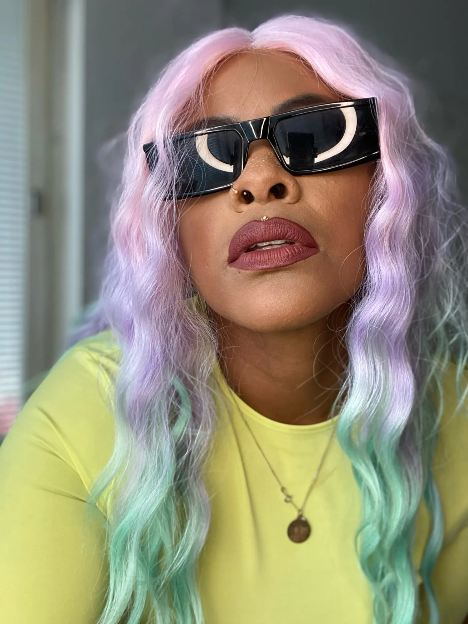 Joedir | Long Wavy Lace Front Synthetic Wigs with Baby Hair | 30 inch Length | Ombre Rainbow